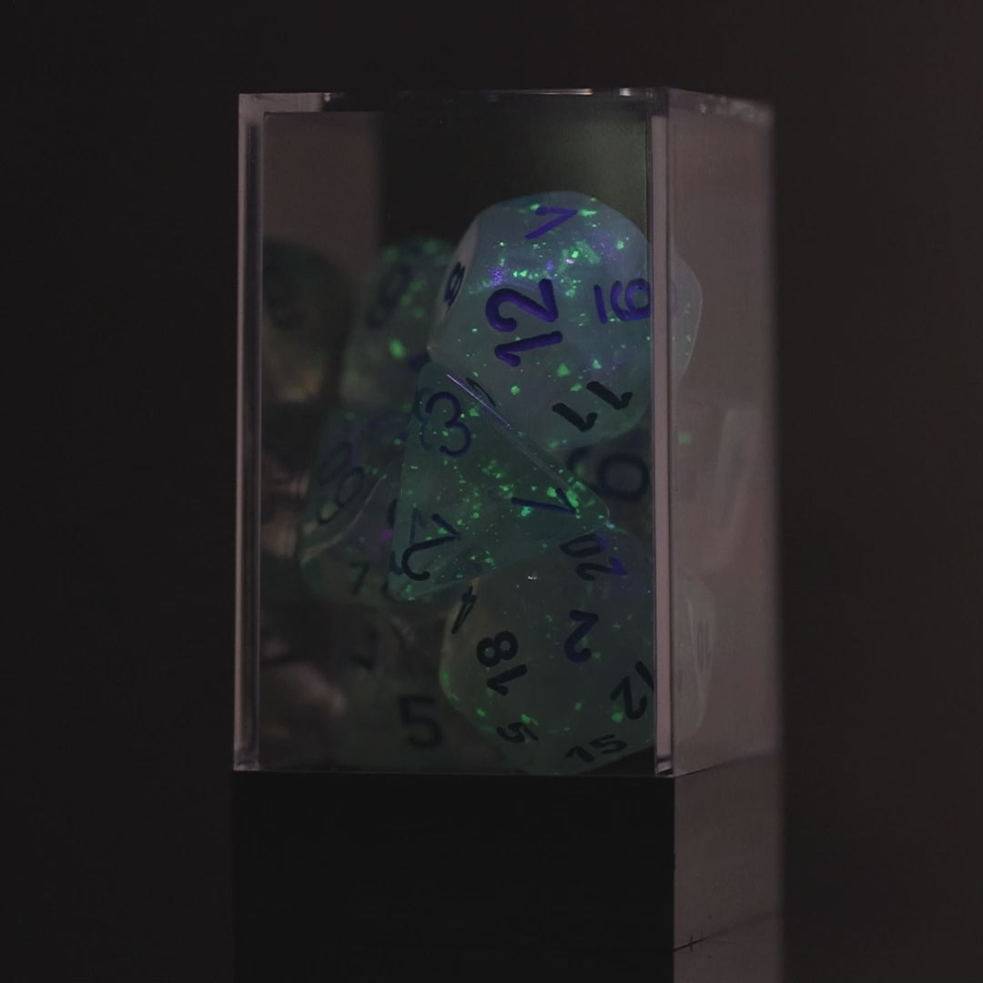 The Chessex Borealis Icicle Light Blue Polyhedral 7-Die Set features a stunning translucent light blue design with a shimmering Borealis effect. This set includes d4, d6, d8, d10, d%, d12, and d20, perfect for D&D, Pathfinder, and other RPGs. With etched, easy-to-read numerals, these dice bring both style and function to your game. A must-have for any tabletop gamer or collector!