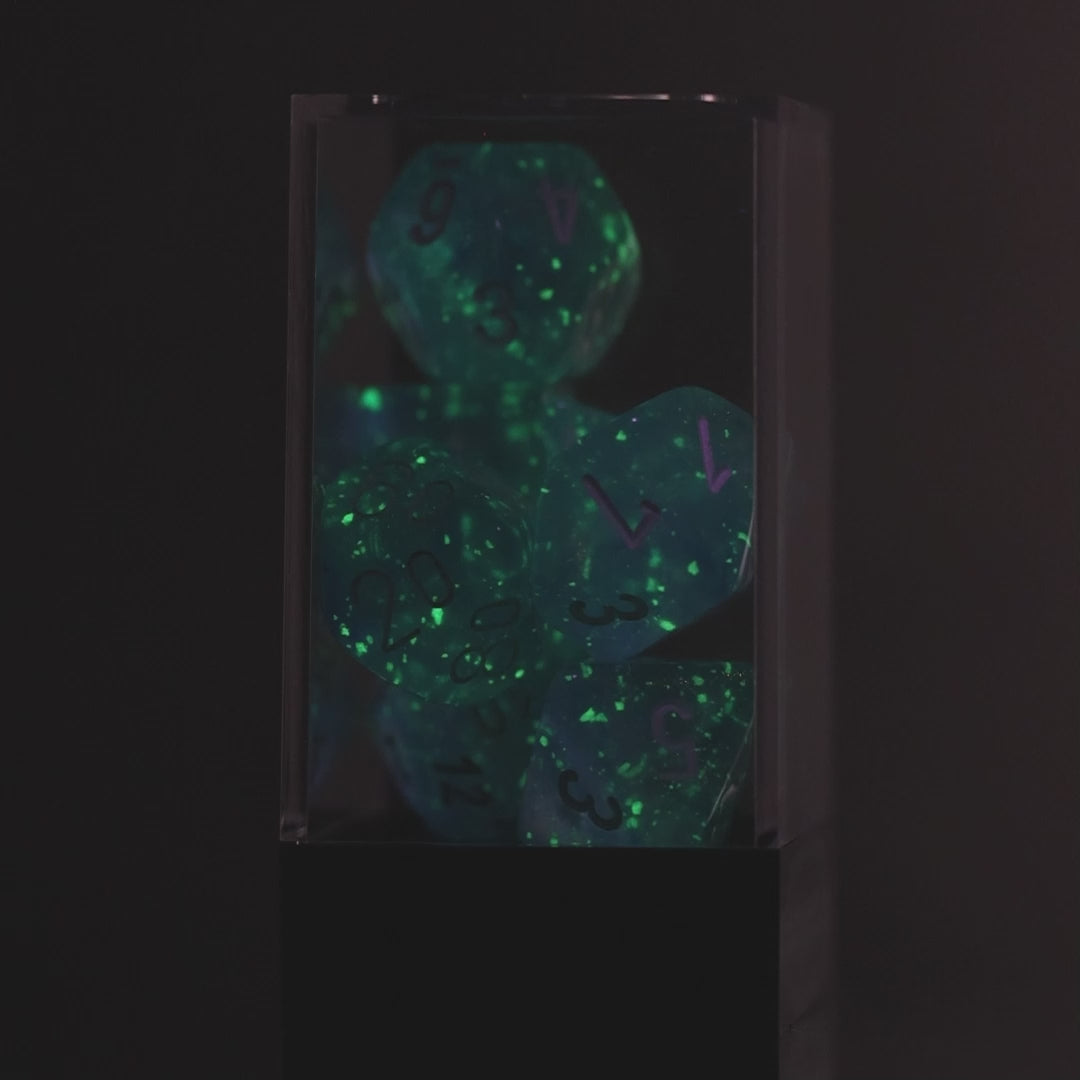 The Chessex Borealis Sky Blue/White Polyhedral 7-Die Set (CHX 27586) features a brilliant sky blue color with a shimmering Borealis effect and crisp white numerals for easy reading. This set includes d4, d6, d8, d10, d%, d12, and d20, making it perfect for D&D, Pathfinder, and other RPGs. A stunning addition to any dice collection!